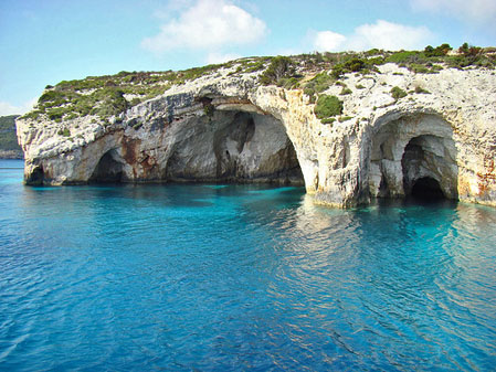 blue water and natural caves at Kryfo, near Keri village. |