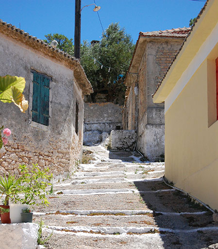 of a narrow street at Keri village (5km from Keri Beach). |